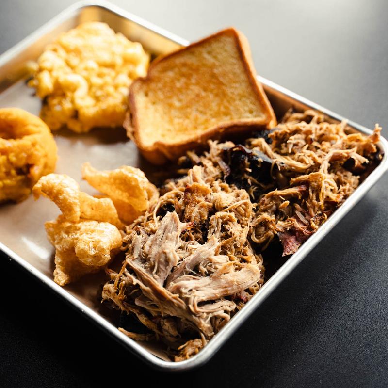 Got the sampler and shared it with the hubby. Plenty of meat on there to share between 2 people and was delicious. Tender brisket, Fall off the bone ribs and good pulled pork. The baked beans and Mac and cheese were really good too!